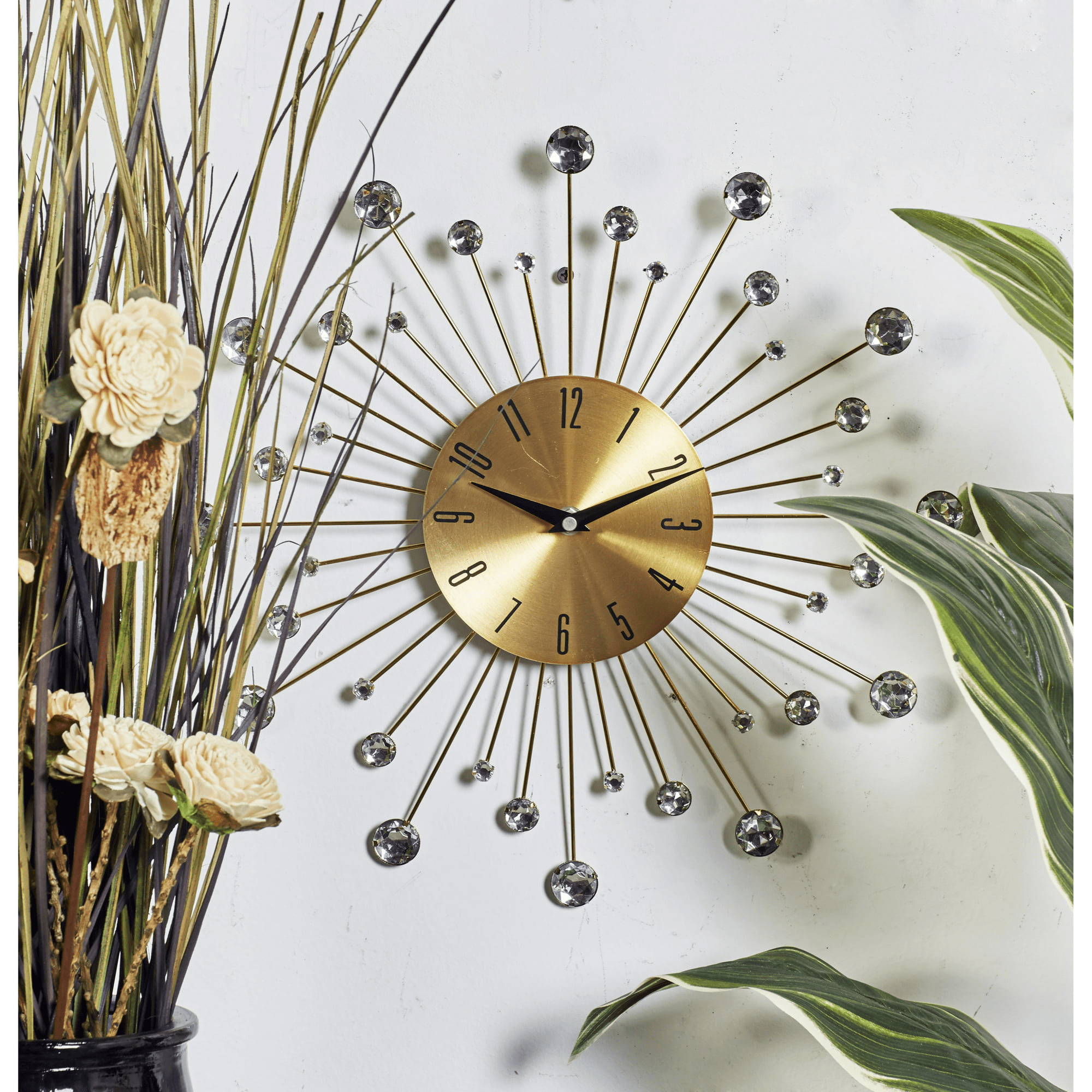 Decmode 14" gold metal starburst wall clock with crystal accents makes a perfect addition to any home