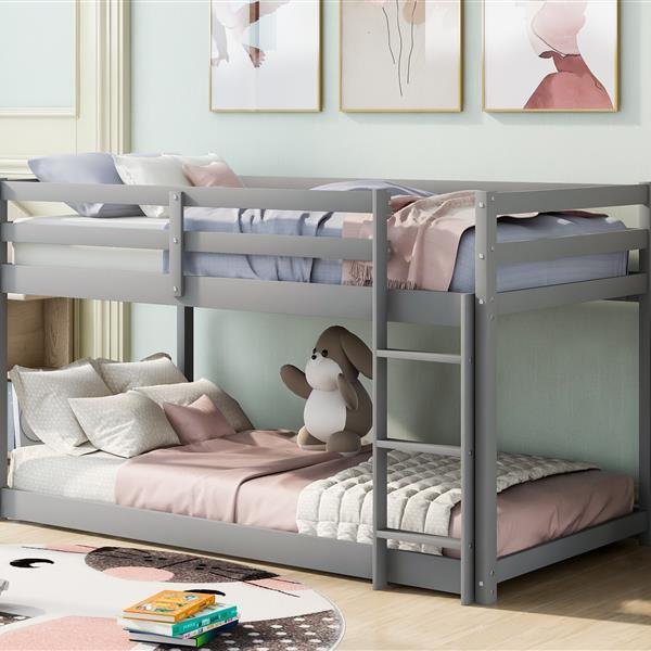 Floor Bunk Bed with Ladder , Gray