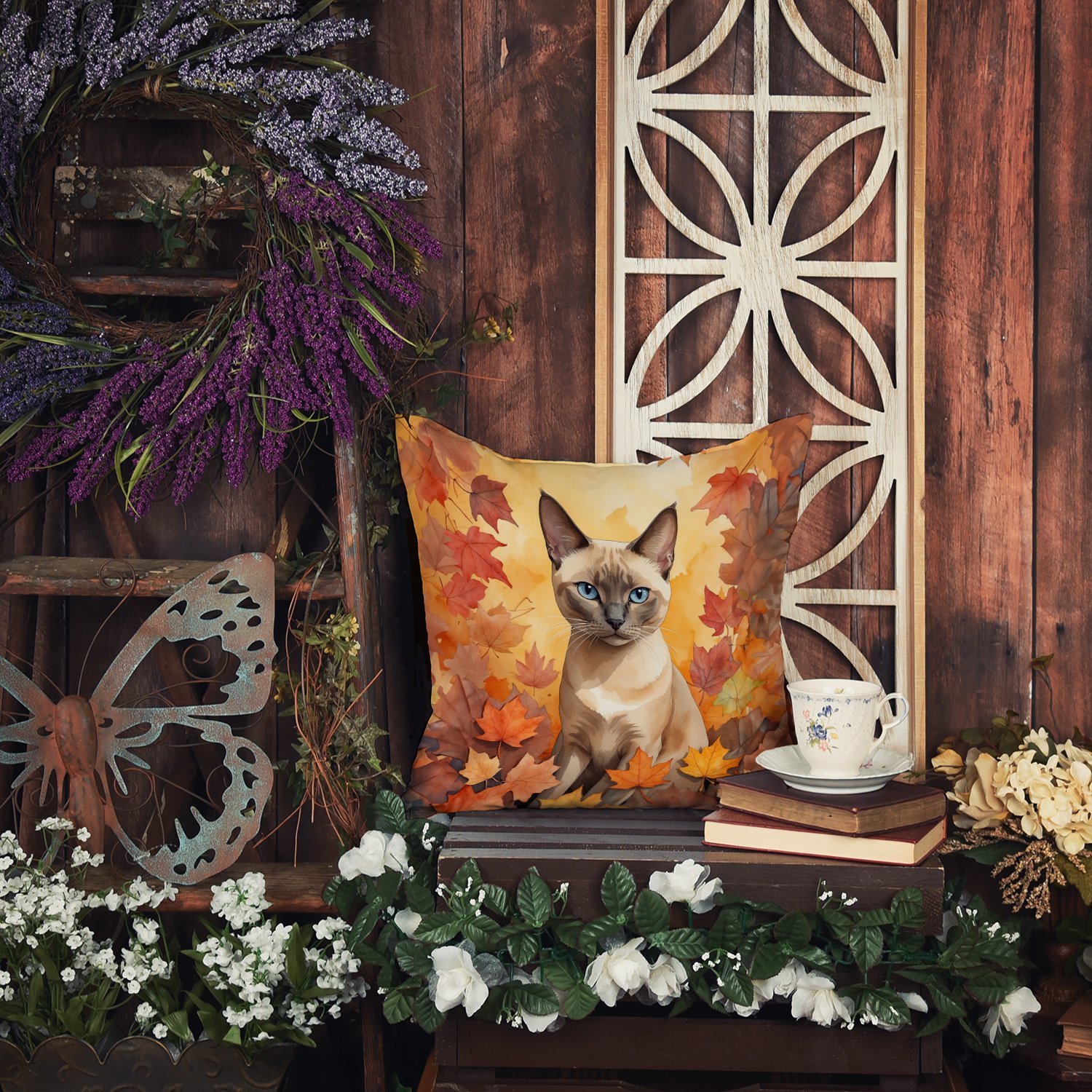 Home > Tonkinese Cat in Fall Leaves Throw Pillow Machine Washable, Indoor Outdoor Decorative Pillow for Couch, Bed or Patio, 18Hx18W