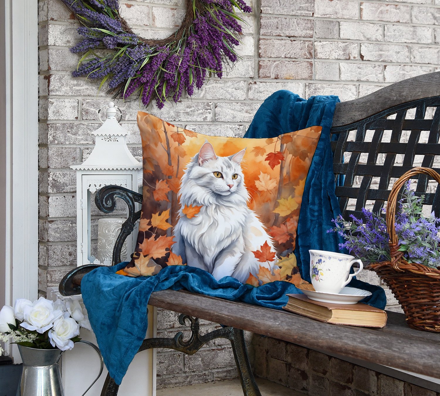 Home > Turkish Angora Cat in Fall Leaves Throw Pillow Machine Washable, Indoor Outdoor Decorative Pillow for Couch, Bed or Patio, 18Hx18W